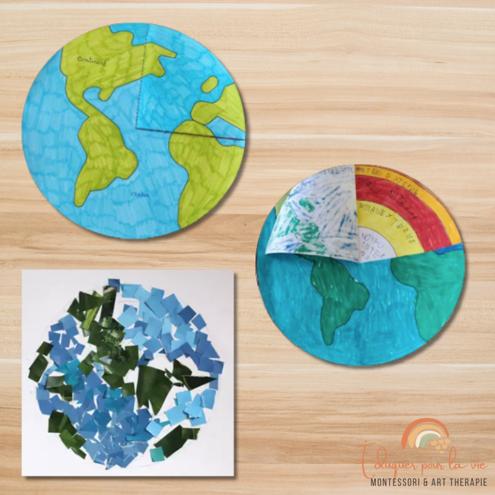 Voici la liste du matériel que vous recevez en choisissant ce pack Montessori sur le thème de la Terre :